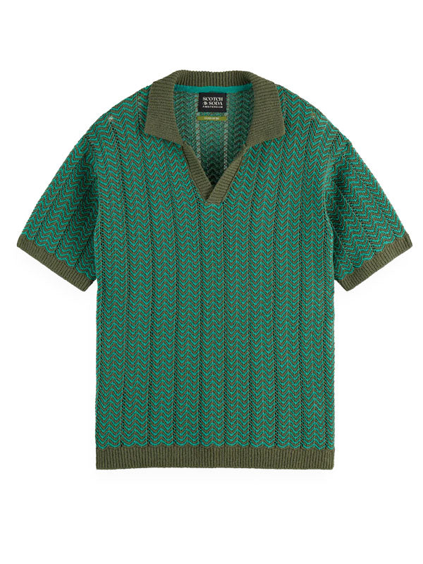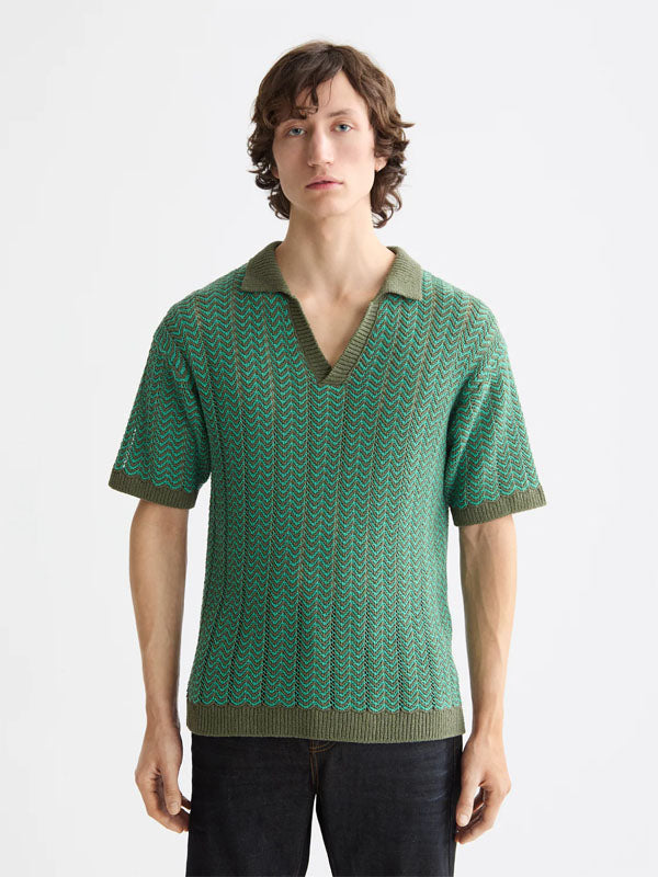 Open Structured Knitted V-Neck Polo